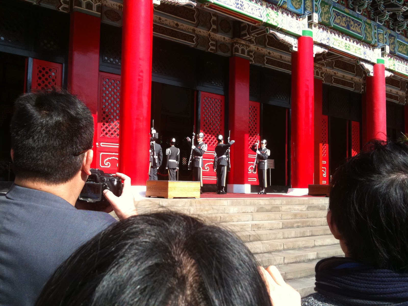 Martyrs Shrine was next on the agenda. It opens from 9am to 5pm on weekdays, weekends and public holidays. The guard changing ceremony starts at 9am for every hour, with the last one for the day at 4.40pm. The Martyrs Shrine is dedicated to approximately 330,000 men who sacrificed their lives to the overthrowing of the Ching Dynasty before the establishment of the Republic of China in 1911, and who fell during the Sino-Japanese war (1938-1945) and the Chinese Civil war (1945-1949) - more information http://www.taiwan.com.au/Envtra/Taipei/report37.html